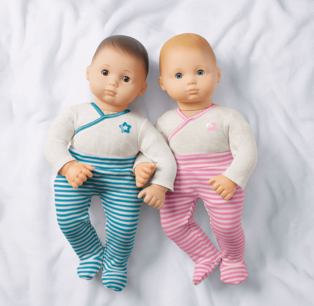 Also in 2003, American Girl released a line similar to “Bitty Baby” called “Bitty Twins,” which was targeted at slightly older audiences. These dolls could only be purchased as a pair, since the twins came together. This was the first time boy dolls were sold. The line was discontinued in 2016, but was brought back as “Bitty Baby Twins” in 2021.
